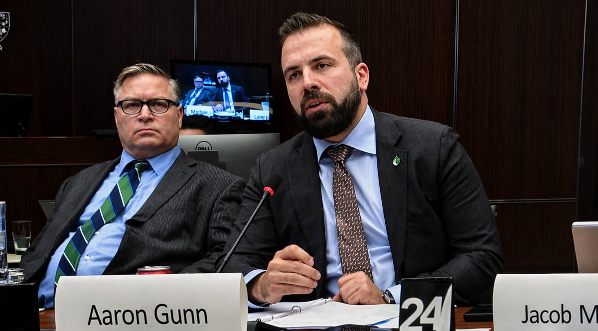 (Main image shows Conservative MP Aaron Gunn ( North Island-Powell River) at last Monday’s meeting of the Standing Committee on Fisheries and Oceans. Next to him is Clifford Small, Conservative MP for Central Newfoundland)